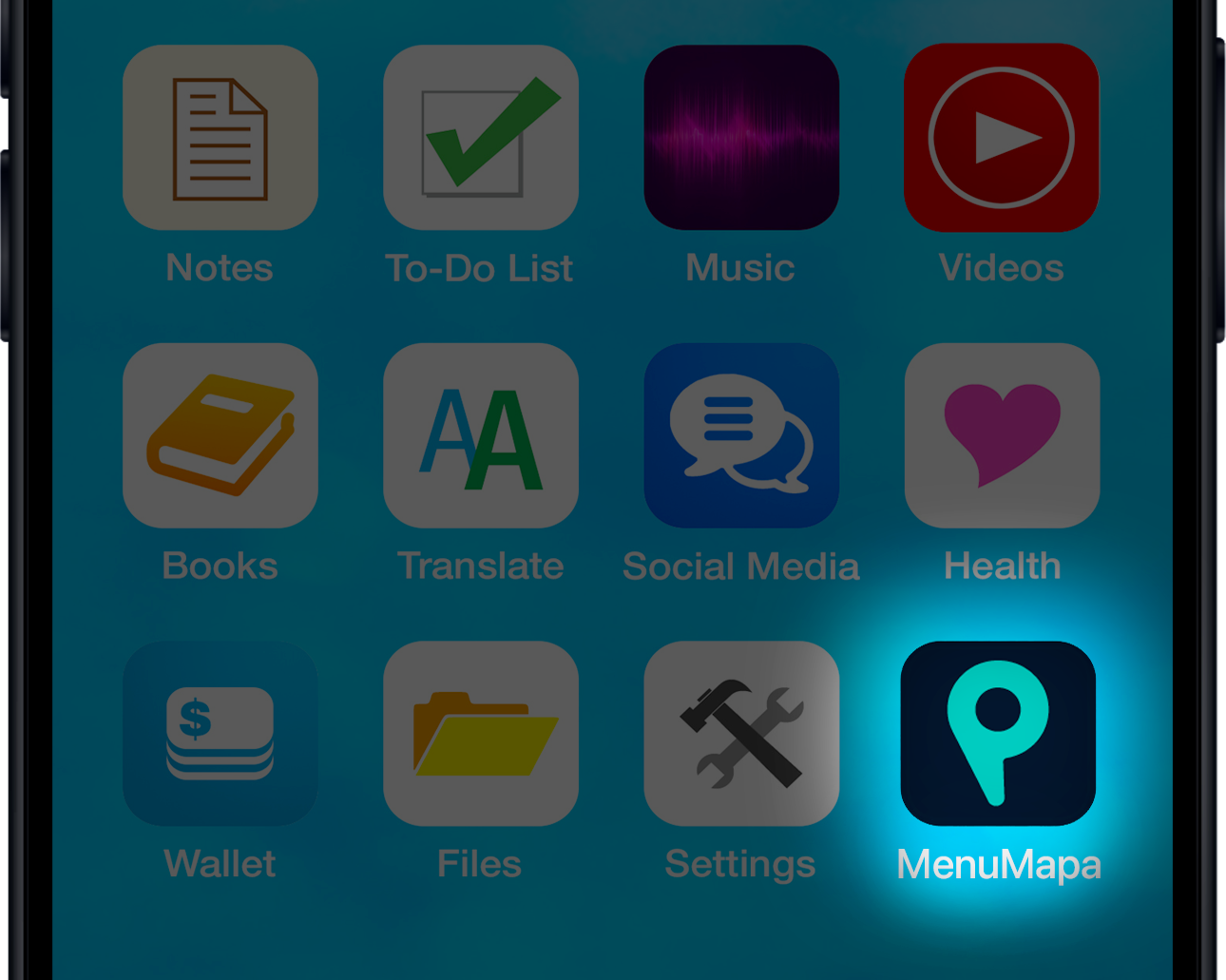 MENUMAPA je webová aplikace, kterou dáš na plochu mobilu stejně jako klasickou appku – dvě kliknutí a máš ji u ostatních ikon bez nutností instalace.